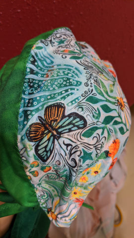 This is a unisex pattern that will fit most adult heads. The band material is a lightweight cotton. The top pattern is a soft stretch material designed by Amy Kruse with Love From Alaska in Kasilof.