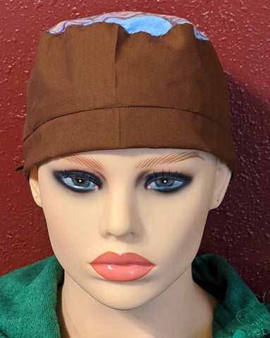 This is a unisex pattern that will fit most adult heads. The band material is a lightweight cotton. The top pattern is a soft stretch material designed by Amy Kruse with Love From Alaska in Kasilof.